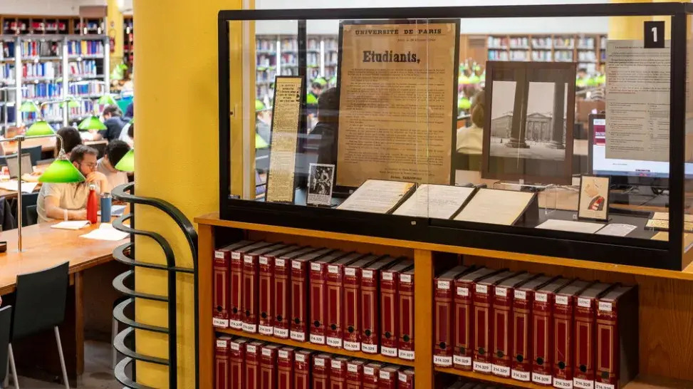 L’exposition en salle met en valeur des documents originaux, des fac-similés conçus par Maeli Desenclos, chargée de conservation au sein de la bibliothèque Cujas, et des objets prêtés (toque, médailles, fausse carte d’identité, etc.) qui viennent composer un récit au cœur de la bibliothèque.